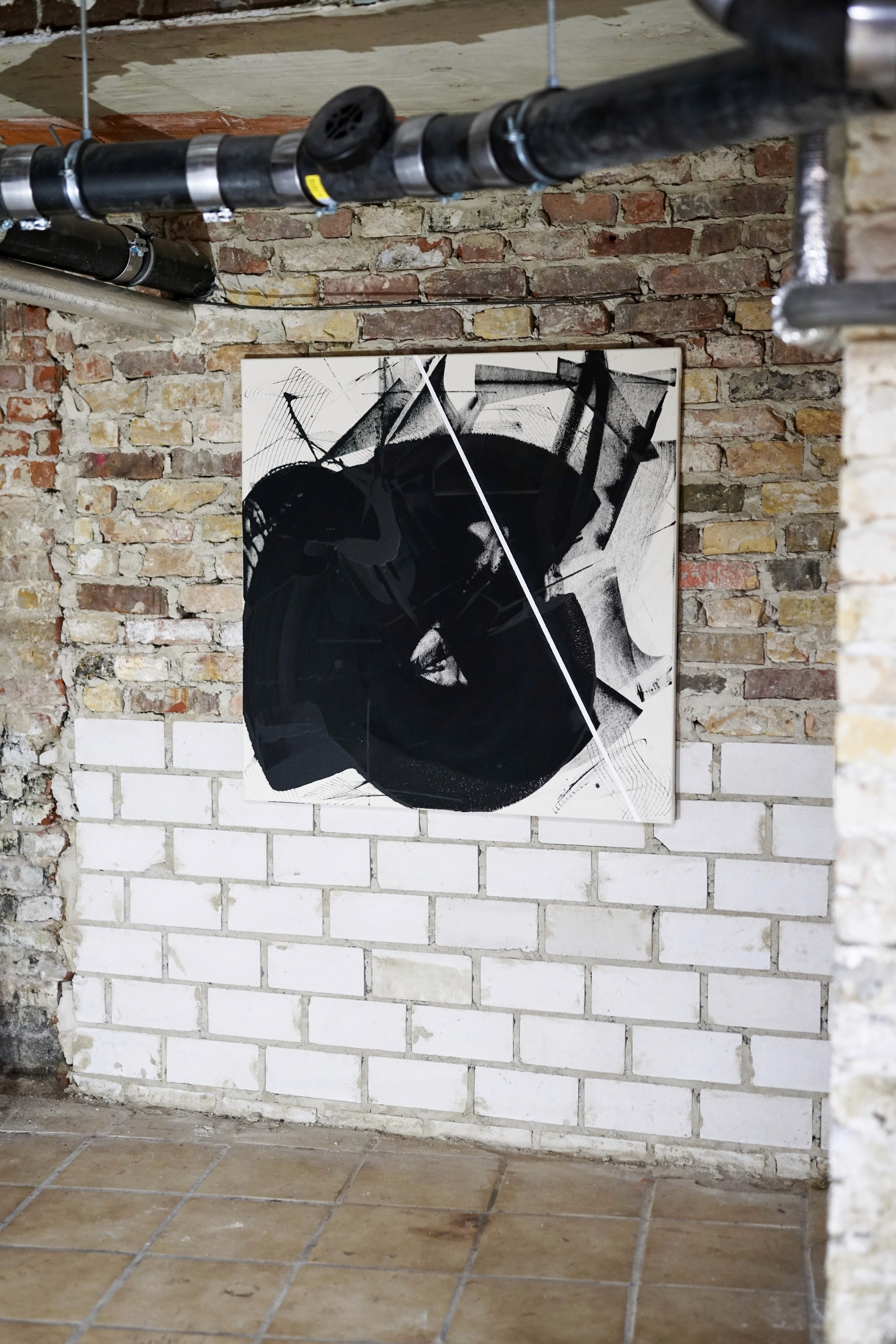 Descending into the back of the shop, visitors find the traditional notions of the exhibition space challenged, and artistic expression thriving in an unexpected setting. Against the backdrop of the basement's darkness, some paintings incorporate light directly, creating a striking contrast. This juxtaposition invites viewers to contemplate the interplay between light and shadow in both the artworks and the space they inhabit — exploring the boundaries between public and private spaces, and the transformative power of artistic intervention in everyday environments.